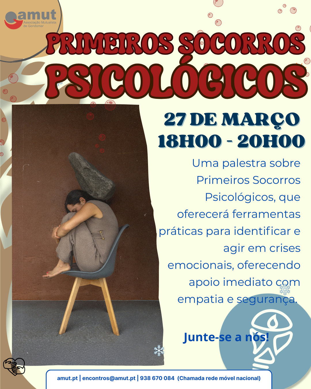 No próximo dia 27 de Março irá decorrer na AMUT os Primeiros Socorros Psicológicos, gratuito e orientado pela Psicóloga Carla Júlio
